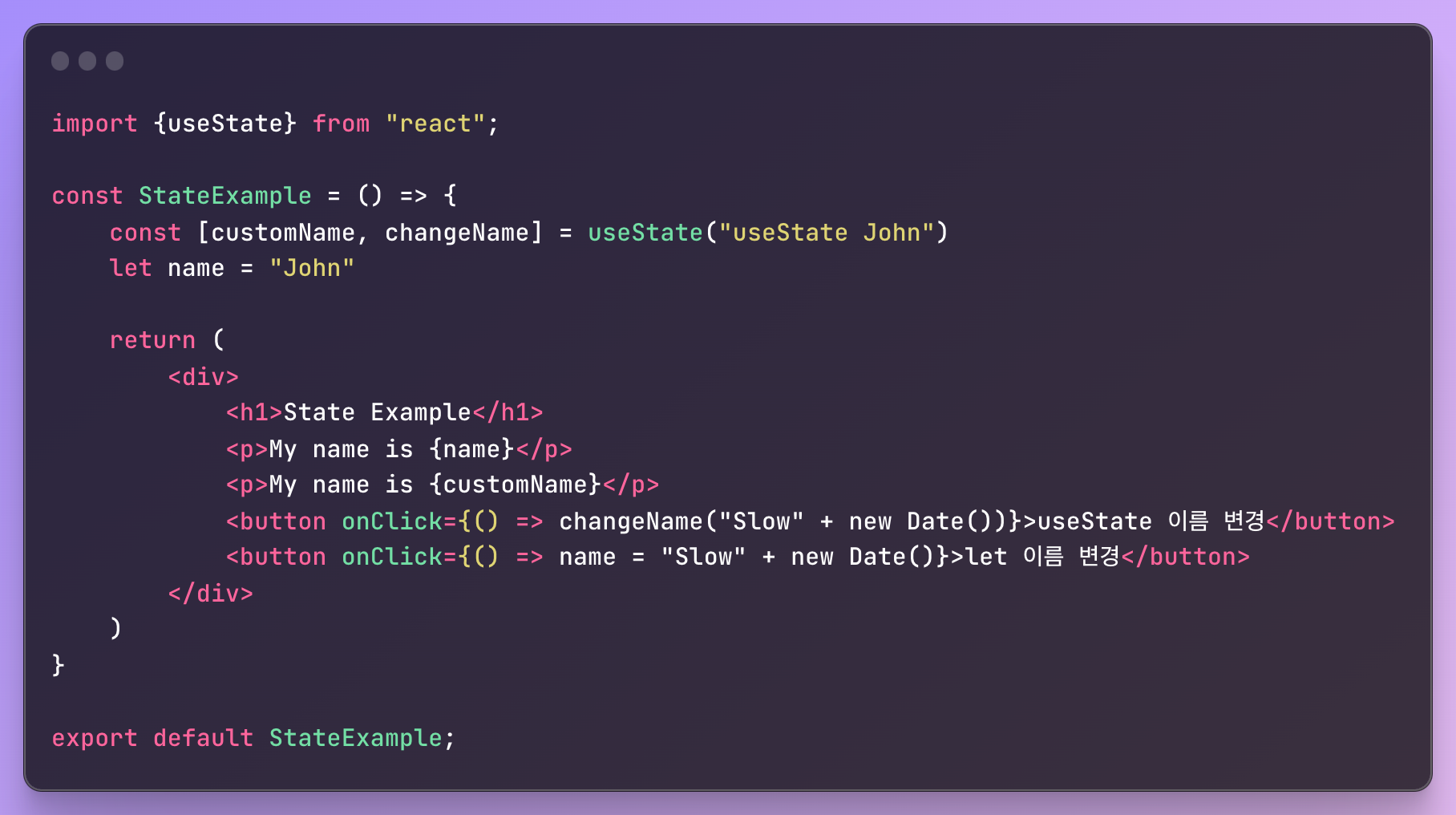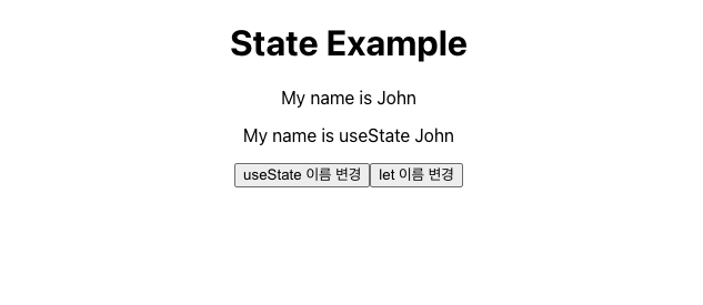 “let 이름 변경” 버튼을 클릭하더라도 이름이 변경 되지 않을것이다.