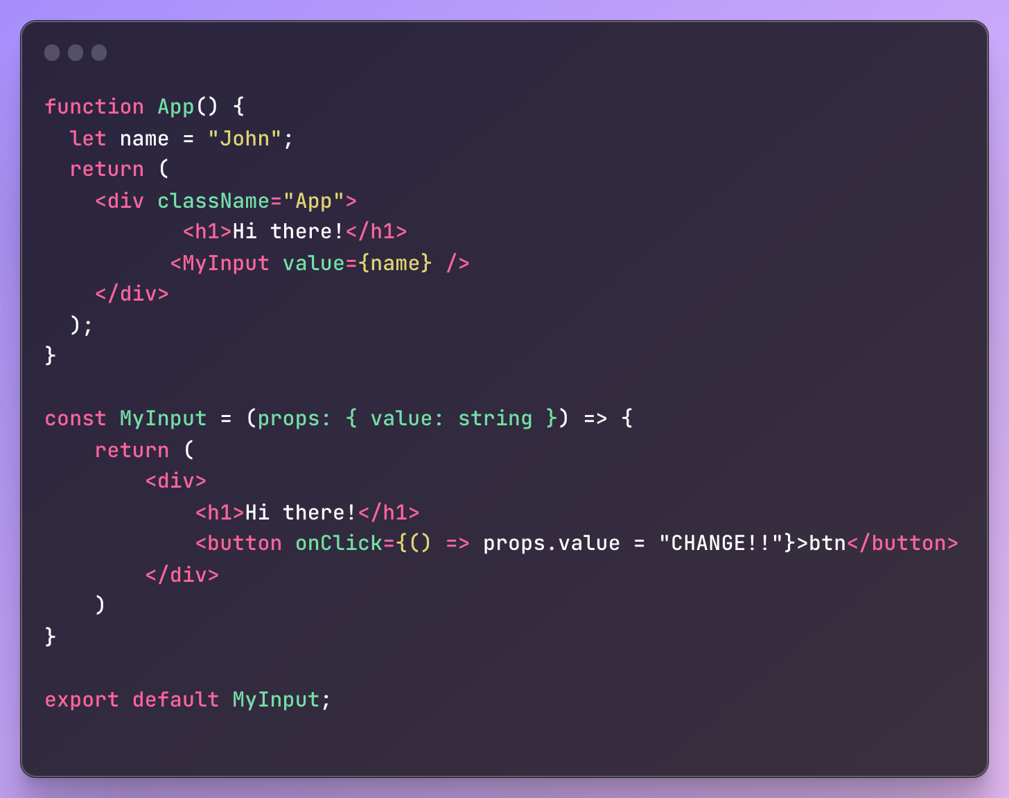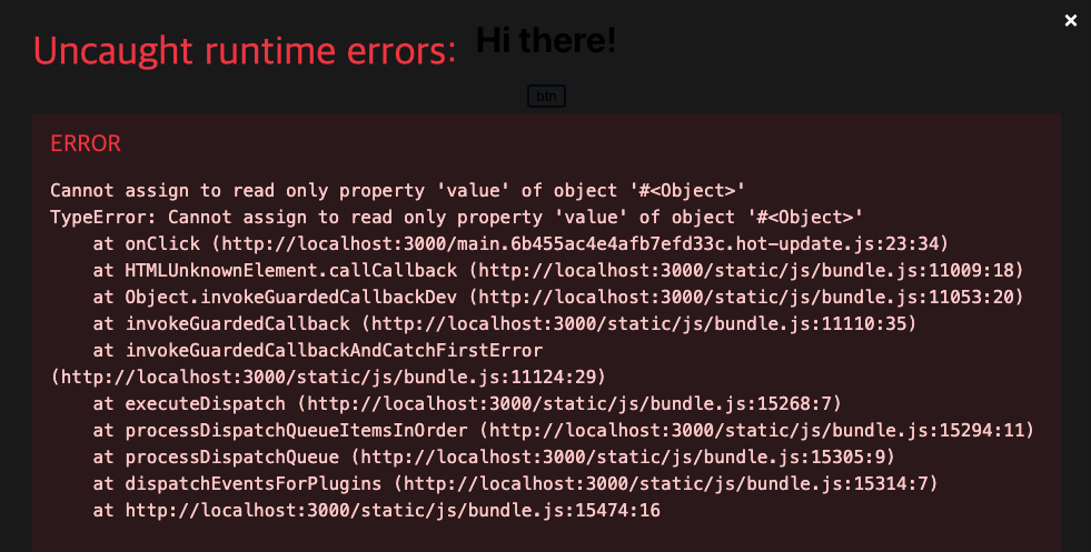 분명 let name = "John"; 수정 가능한 let으로 선언 했지만, 자식 컴포넌트(객체)에서 수정접근시 read only라 수정할 수 없다는 에러가 발생한다.