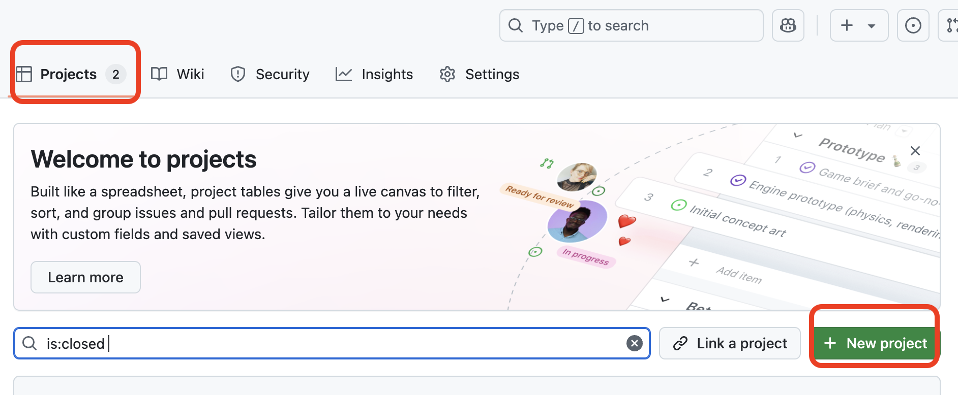 - Projects로 팀 작업 관리하기