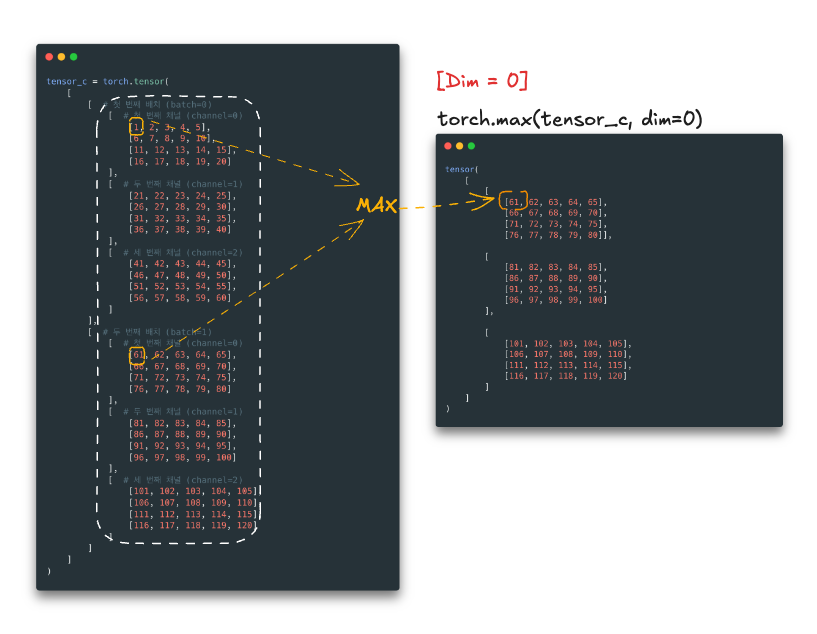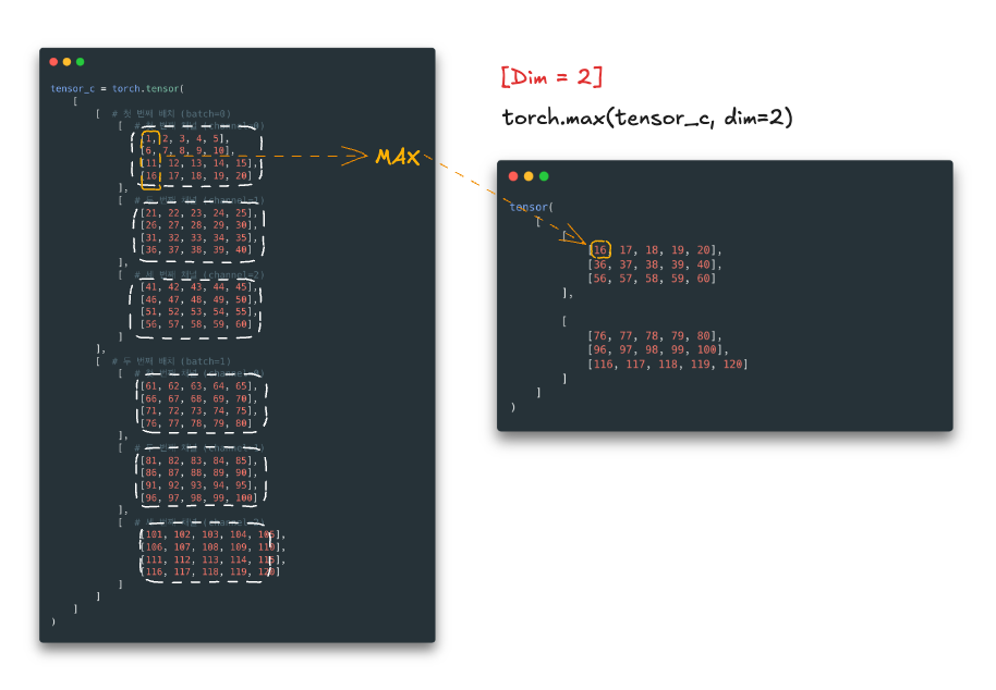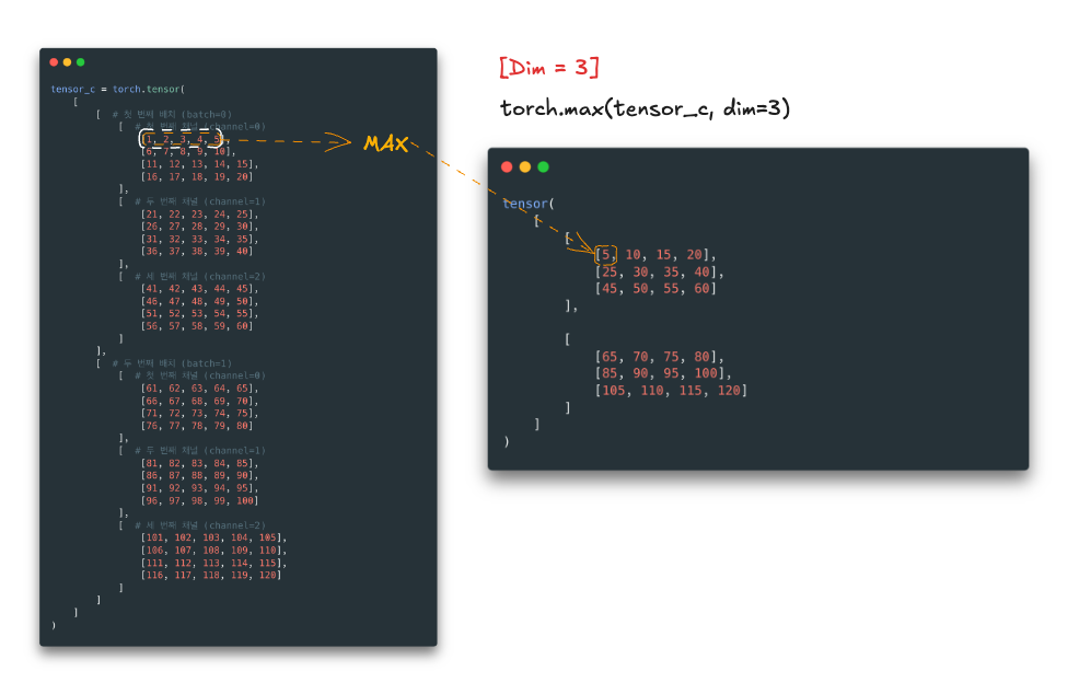 Tensor에서 dim을 지정하는 이유는 데이터를 특정 차원(축, dimension) 기준으로 연산하기 위해서입니다.
