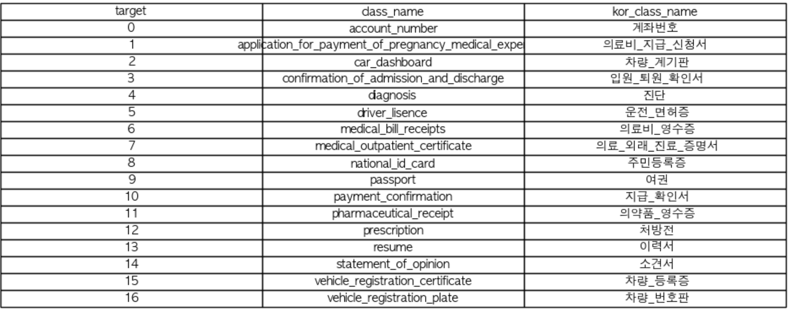 - 출력 (Output): 각 이미지의 문서 클래스 예측 (CSV 파일 제출)