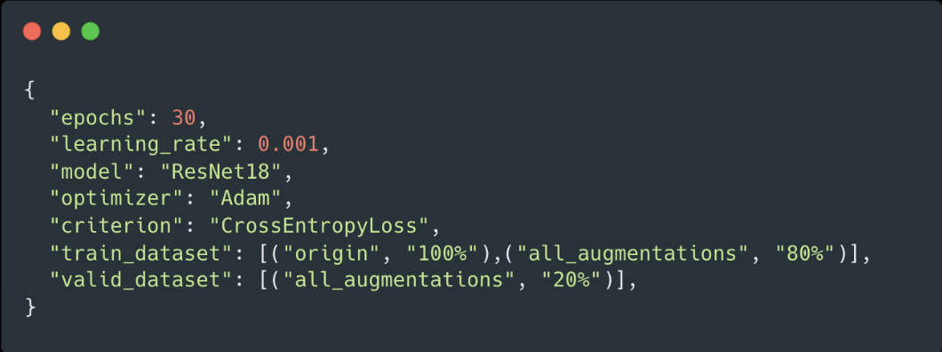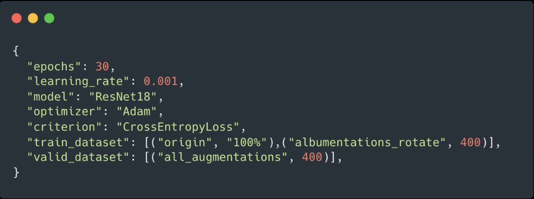 - 테스트 데이터: 회전, 컷믹스, 믹스업, 노이즈, 밝기조절, 재질 변형 등